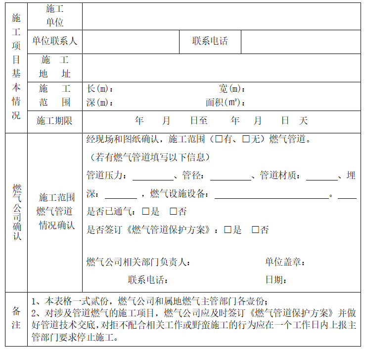 附件:施工现场燃气管道确认表