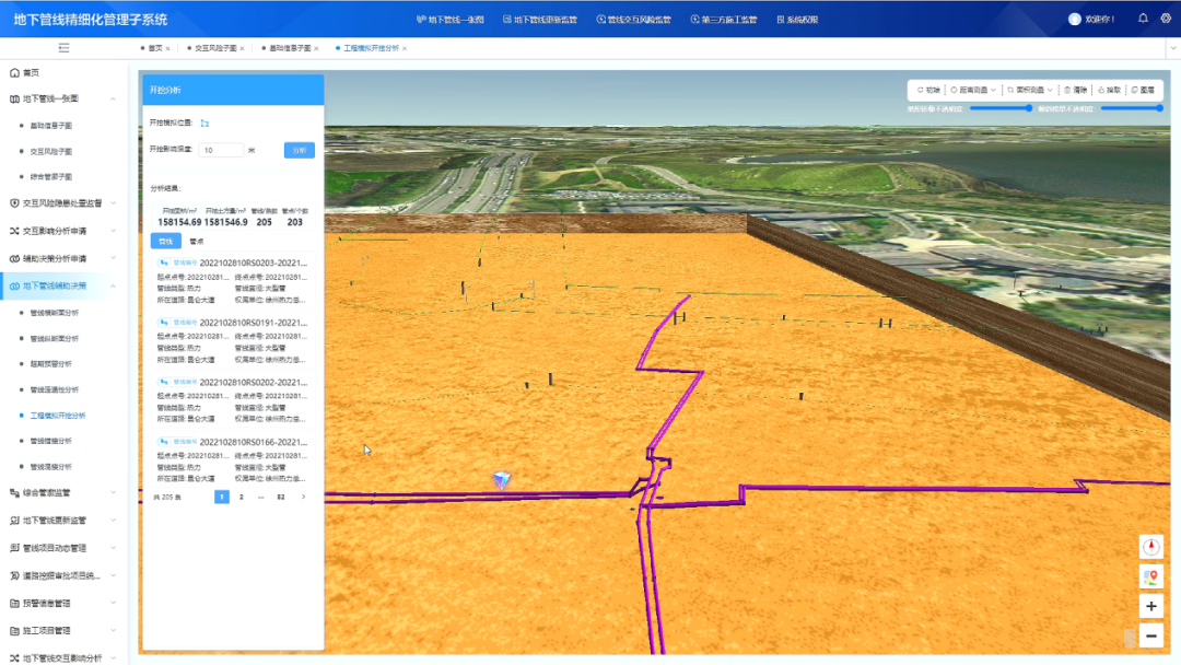 地下管线管理迈入精细化时代。徐州汇聚9503公里综合管线数据,建成地下管线“一张图”,开发“工程模拟开挖分析”功能。施工单位只需框选区域、录入深度,即可查看动态3D图层,清晰掌握开挖范围、土方量及管线分布。