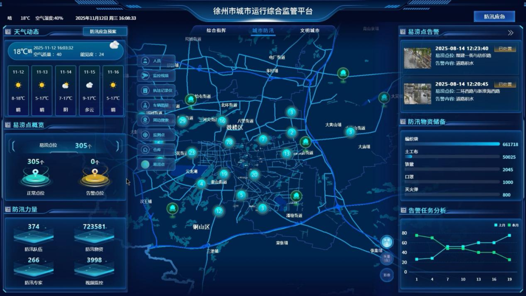 作为江苏省内唯一由城管部门负责城市生命线安全工程建设试点的城市,徐州市创新推进“城市生命线”与城市运行管理服务平台深度融合,打造出“全域感知、实时预警、高效处置”的城市运行综合监管平台,让这些看不见的生命脉络变得可感、可知、可控。