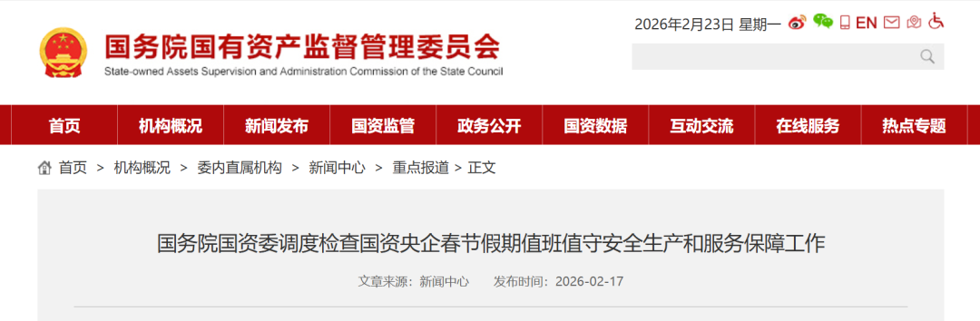来源:国务院国有资产监督管理委员会 发布日期:2026-02-24