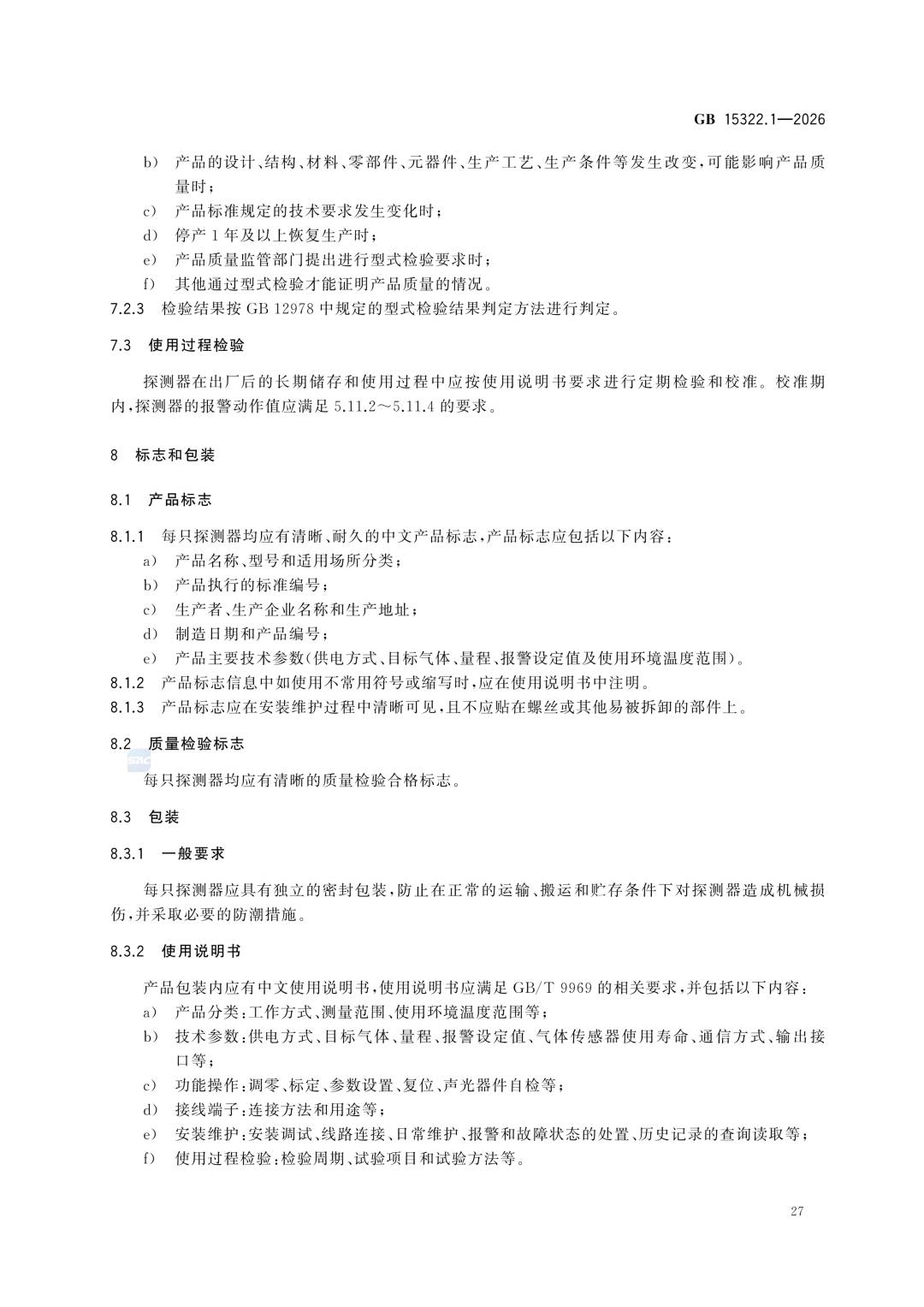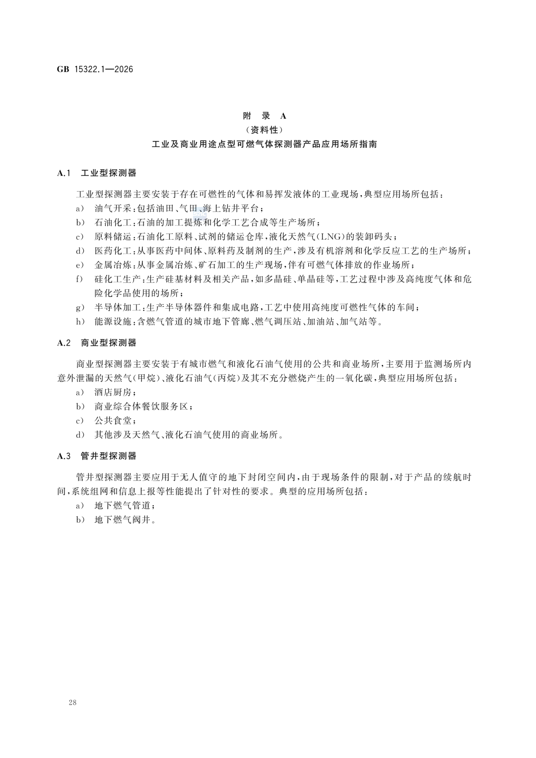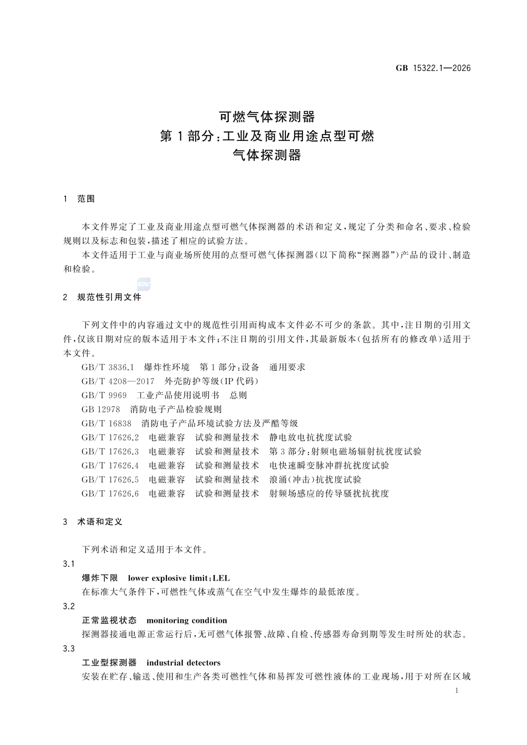 GB 15322.1-2026可燃气体探测器 第1部分:工业及商业用途点型可燃气体探测器