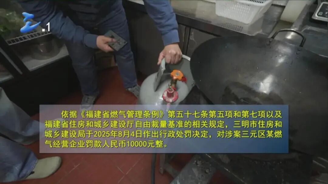 依据《福建省燃气管理条例》第五十七条第五项和第七项以及福建省住房和城乡建设厅自由裁量基准的相关规定,三明市住房和城乡建设局于2025年8月4日作出行政处罚决定,对涉案三元区某燃气经营企业罚款人民币10000元整。